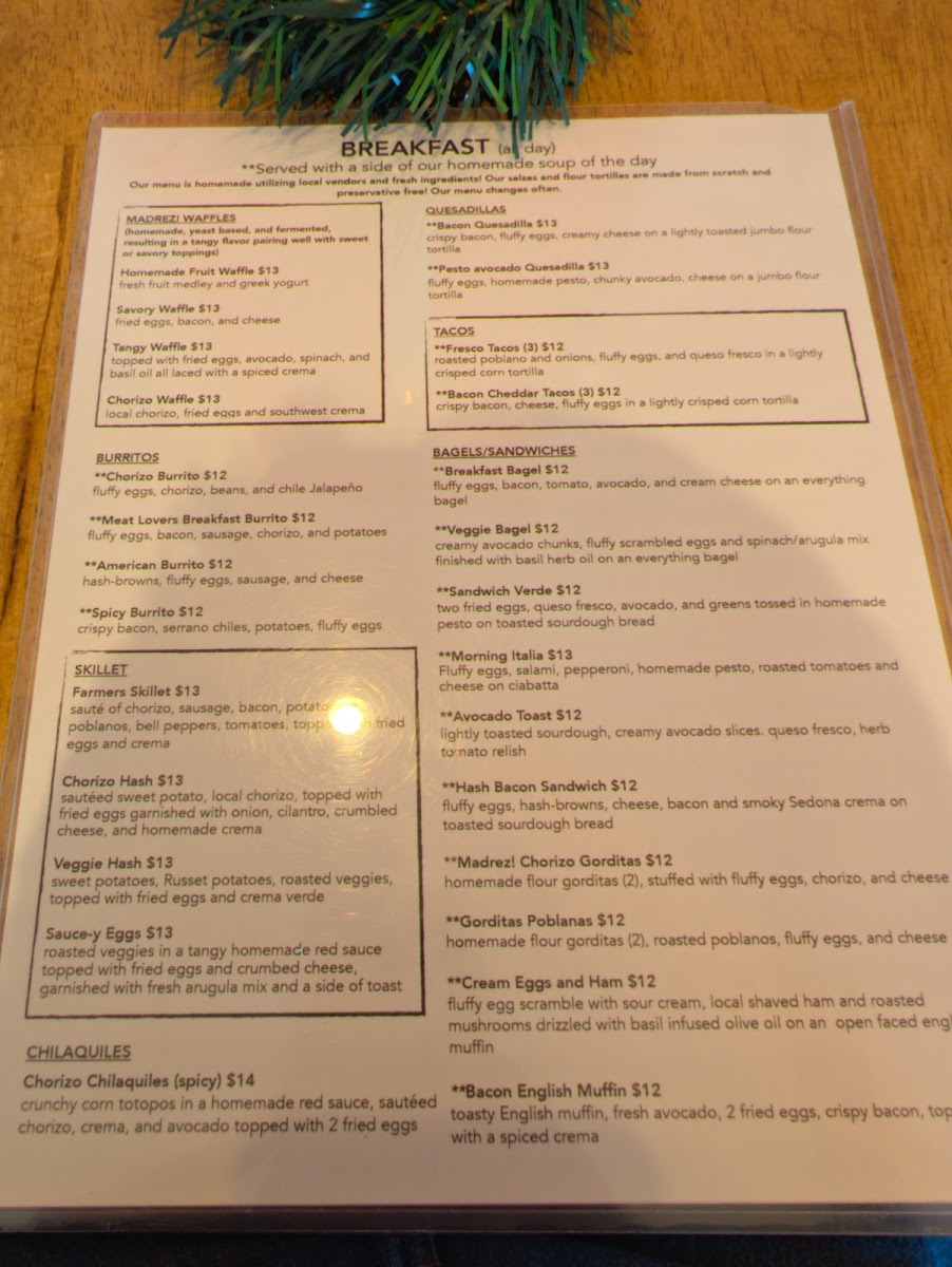 Madrez Cafe Elkhorn Menu