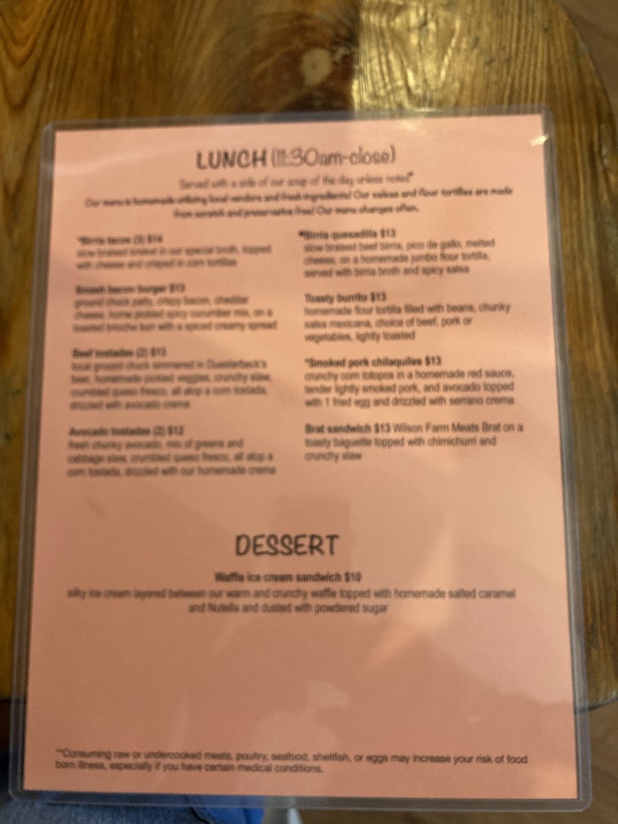 - Soups: Seasonal homemade soup available for a light, warm option.